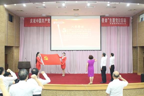 大会在激越豪迈的国歌声中拉开序幕。陈胜利、陈燕等6名党龄超过25年的党员教师集体过政治生日,学生党员为老党员献花。老党员现场为新党员佩戴党徽,并带领他们重温入党誓词。