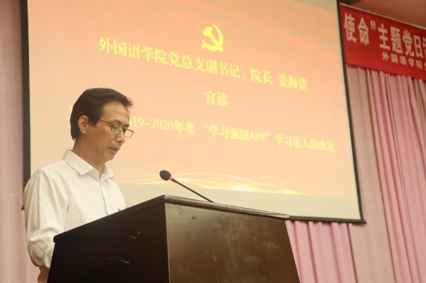 党总支副书记、院长姜海清宣读《关于表彰2019-2020年度“学习强国APP”学习达人的决定》,党总支委员和支部书记为学习强国“学习达人”颁发《党章的力量》、学习笔记本等奖品。