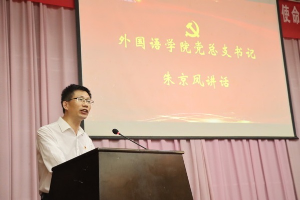 党总支书记朱京凤回顾了中国共产党的奋斗历程,总结了学院党建和中心工作取得的成绩,并就全面从严治党向全体党员提出了四点要求:统一思想、提高站位;多措并举,攻坚克难;团结合作,砥砺共进;严明纪律,做好表率。他表示,今年是建党99周年,也是“十三五”规划的收官之年,全体党员要牢记教育报国初心,勇担立德树人使命,瞄准党建和教育教学工作的目标任务,发挥好党员先锋模范作用,共同书写学校和学院高质量发展的新篇章。