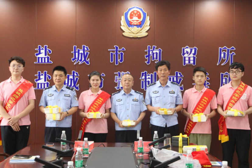 盐城市强制戒毒所所长郭琳、政委栾巨林和副所长成孝康带领大学生志愿者们参观了所内的业务设施和宣传展区,观看主题短片,并召开禁毒防艾知识讲座,详细讲解了“中国禁烟传统”、“新型毒品辨识”、“禁毒法律法规”、“毒品的身心危害”和“预防毒品侵蚀”等方面的内容,为大学生禁毒服务团利用暑期顺利开展公益宣讲、知识普及等活动打下了良好基础。讲座中,郭琳所长与大学生们积极互动,希望他们能自觉抵制“大麻合法化”等错误思想,摒弃猎奇心理,珍惜美好时光,在禁毒事业中发出青春声音、贡献青春力量。