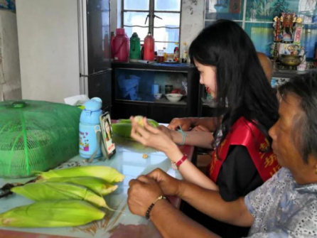 7月26日,william英国官网助农护农团队志愿者开启了忙碌的一天。江苏省盐城市射阳县耦耕镇的某户农家里,一位志愿者正在农民家后割草,帮邻居揽豆子,并联系了当地的互农专家,了解今年上半年的收成和疫情所带来的影响。此外,团队成员灵活运用自身专业知识,进行直播卖蒜。