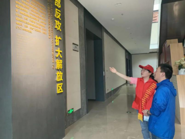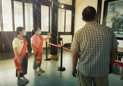 在活动中,讲解员先带领志愿者们游览了泰山庙并给他们讲解泰山庙蕴含的人文故事及历史渊源。在讲解中,在场的学生代表听到新四军的英勇事迹后无不为之精神振奋。在经过行专业培训后,由志愿者们对向前往泰山庙游览的游客进行引导和讲解。同学们积极投入其中,宣传铁军精神,讲好新四军的红色故事。