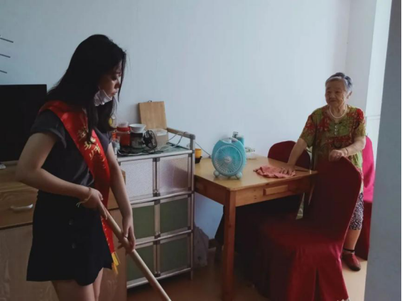 志愿者们在负责人的带领下,争取到了老人们的同意,开始为她们打扫卫生,帮她们整理东西,经过志愿者们的打扫让福利院焕然一新。