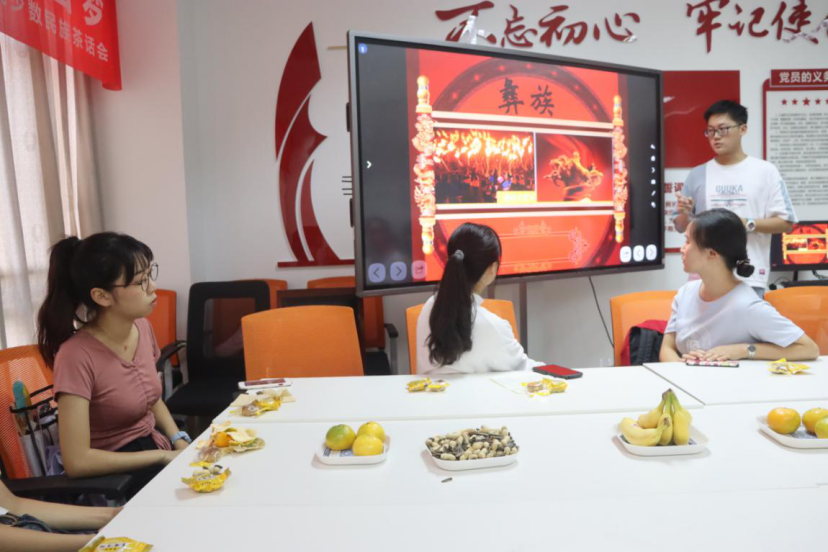 茶话会前,学院团总支精心准备了水果、月饼等零食,给少数民族学生送上双节问候,使异乡学子感受到佳节的温暖,各族学生依次分享家乡风俗和民族特色并表演民族歌舞,展现了民族艺术的独特魅力,赢得全场阵阵掌声。