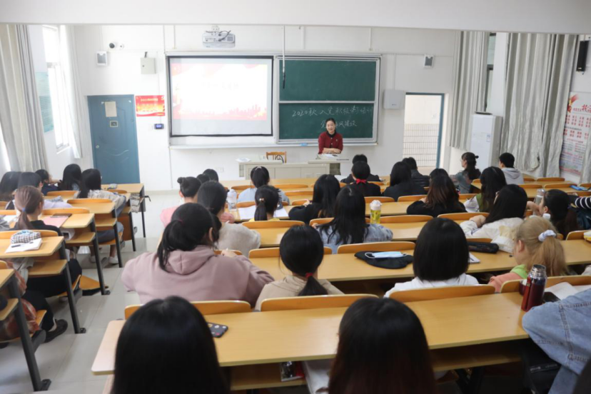 张书记从共产党的先进性切入,引出新时代党的作风建设,并与同学们互动交流什么是“新时代”。张书记指出,从历史发展的维度来看,我们现在所处的时代便是新时代,是先辈们抛头颅洒热血拼出来的,我们要时刻铭记、懂得感恩。张书记从“新时代”、“新理论”、“新使命”、“新变化”四个方面,给同学们讲解当面对抗击疫情、面对国际纷纭等新挑战时,青年该有的责任与担当,并希望同学们以一名合格的共产党员的标准在思想作风、学风、工作作风、领导作风和生活作风五个方面严格要求自己,将党的先进性贯彻到生活的方方面面,成为国之栋梁。
