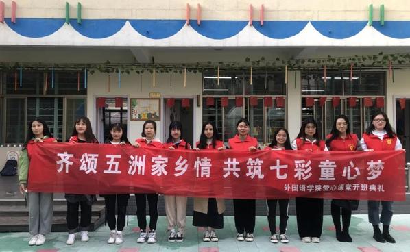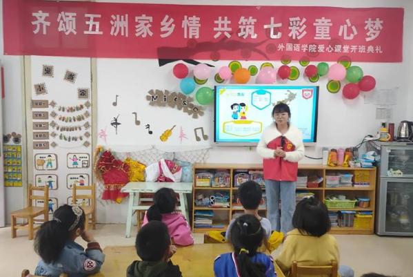 william英国官网省级品牌公益项目“爱心课堂”在WilliamHill威廉希尔幼儿园举行了2020秋学期开班第一课。学院“爱心课堂”公益服务团所有志愿者、幼儿园小朋友及部分社区留守儿童参加了此次活动。