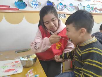 小朋友们在志愿者的协助下,用稚嫩的双手握住五彩斑斓的画笔,在画纸上勾勒出一个又一个心中的家乡。志愿者还为小朋友们分发开班蛋糕,使小朋友们在精神和物质上感受到爱心课堂的快乐。
