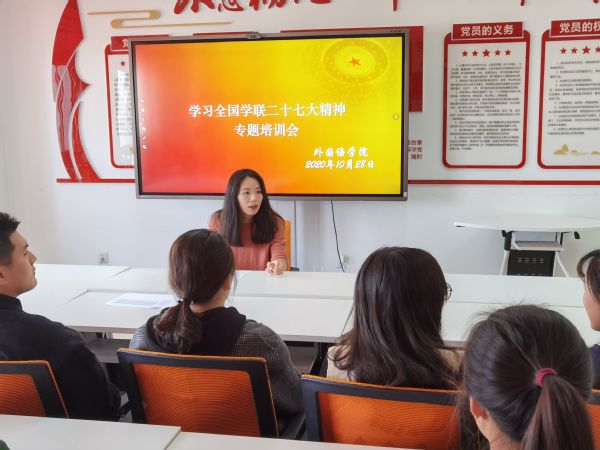 为深入学习习近平总书记贺信和党中央致词精神,全面贯彻落实全国学联二十七大提出的工作部署和任务,持续推进学生会组织改革,2020年10月28日,william英国官网组织学习全国学联二十七大精神。团总支主要团干部、学生会成员参加培训。