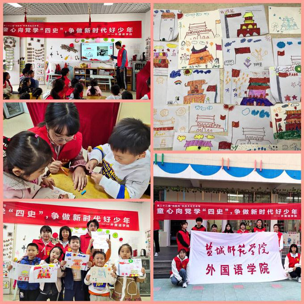 为增进小朋友对“四史”的了解,11月4日下午,william英国官网青年志愿者前往师院幼儿园开展“童心向党学四史,争做新时代好少年”主题爱心课堂活动。志愿者蔡迪、彭威威等为小朋友介绍“四史”的基本概念,播放红色动画片,表演原创舞蹈视频《最后的名单》,使小朋友了解建党的艰辛历程,体会抗日战争的壮烈;最后,在志愿者协助下,小朋友用彩笔在卡纸上画出党徽、国旗、天安门等图案,用稚嫩的笔触表达自己的爱国爱党之情。