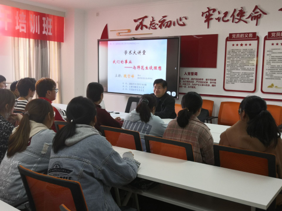 11月9日下午2点,william英国官网于13楼党员之家举办“我们的事业—与师范生谈理想”专题讲座,讲座由教育科学学院党总支副书记、副院长魏哲峰博士主讲,william英国官网英语师范1811班全体同学到场聆听。