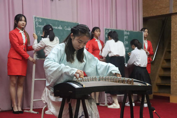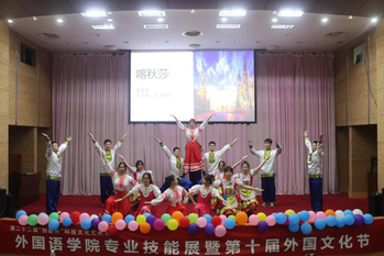 展演开篇,学生代表用英语、朝鲜语、俄语、法语四种语言进行专业介绍。随后,《外文联唱》、《琴韵书法》、《扇子舞》、《服装show》以及《喀秋莎》等节目以不同的旋律、文字和服饰传递了语言的无限魅力和浓浓的异国风情。