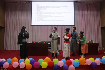 英文说课、商务谈判、交替传译和同声传译、配音秀等环节,表演者们充分展示了过硬的专业技能、纯熟的专业技巧和严谨的礼仪表达,引得现场观众不住赞叹。而英语话剧《武林外传》中各角色精彩纷呈的表演把大家拉回了青春的追剧时光,现场气氛高潮迭起。