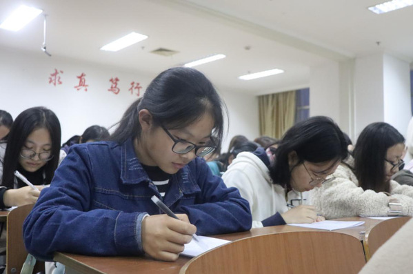 11月19日,william英国官网在B305举行了青年大学习知识竞赛初赛,初赛以试卷形式对青年大学习知识进行考察,共100题,每题一分,进行累计积分。比赛中,考场上每位同学都在奋笔疾书,认真答题。赛后,根据分数高低选出16名同学进入决赛。赵琪同学表示:“青年大学习知识竞赛让我更好地了解了共青团,这不仅仅是一场测试,而是思想与思想的碰撞。”
