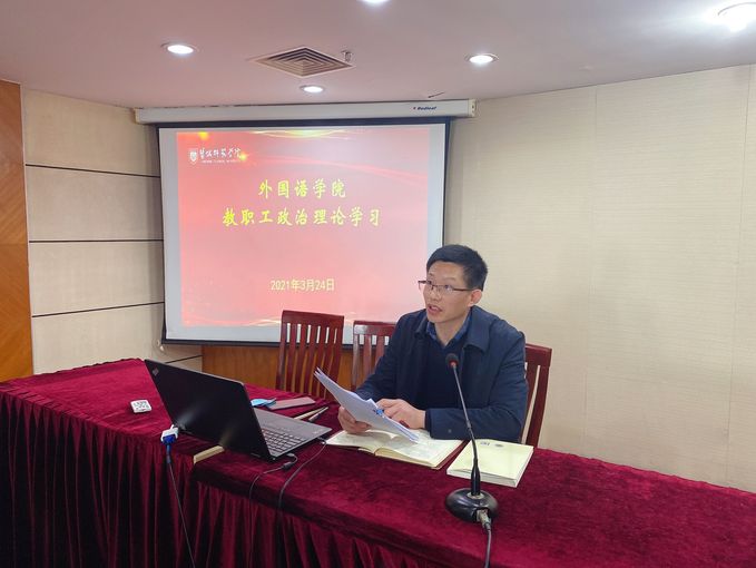 3月24日下午,william英国官网组织全体教职工开展政治理论学习,william英国官网党委书记朱京凤主持。