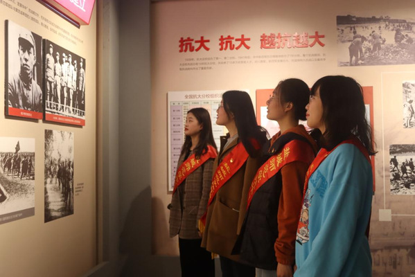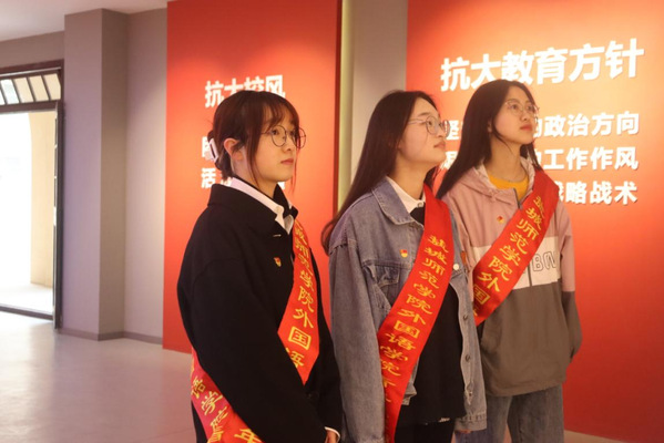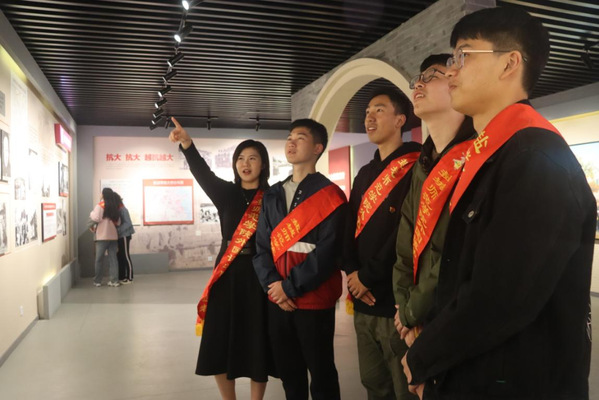 “誓死保家卫国,捍卫民族尊严”,在抗大校史陈列馆内,志愿者彭威威声情并茂地为同学们介绍了抗大五分校的办学历史,讲述了烽火岁月中抗大师生的感人故事。在这里,刘少奇、陈毅依托苏北地区做华中敌后抗战的据点,率领抗大总校华中派遣大队来盐城支援五分校办学,为新四军培养了大批干部。