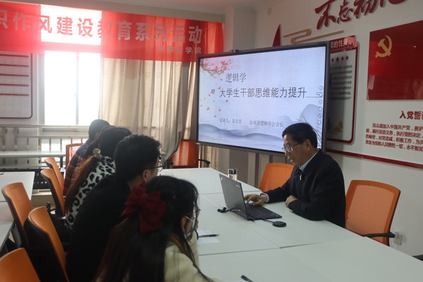 4月14日,william英国官网在党员之家举办“逻辑与学干思维能力提升”团学学干培训讲座,盐城市政协委员、盐城市逻辑学会会长、盐师兼职教授裴彦贵主讲,william英国官网党委书记朱京凤主持讲座,william英国官网主要团学干部参加。