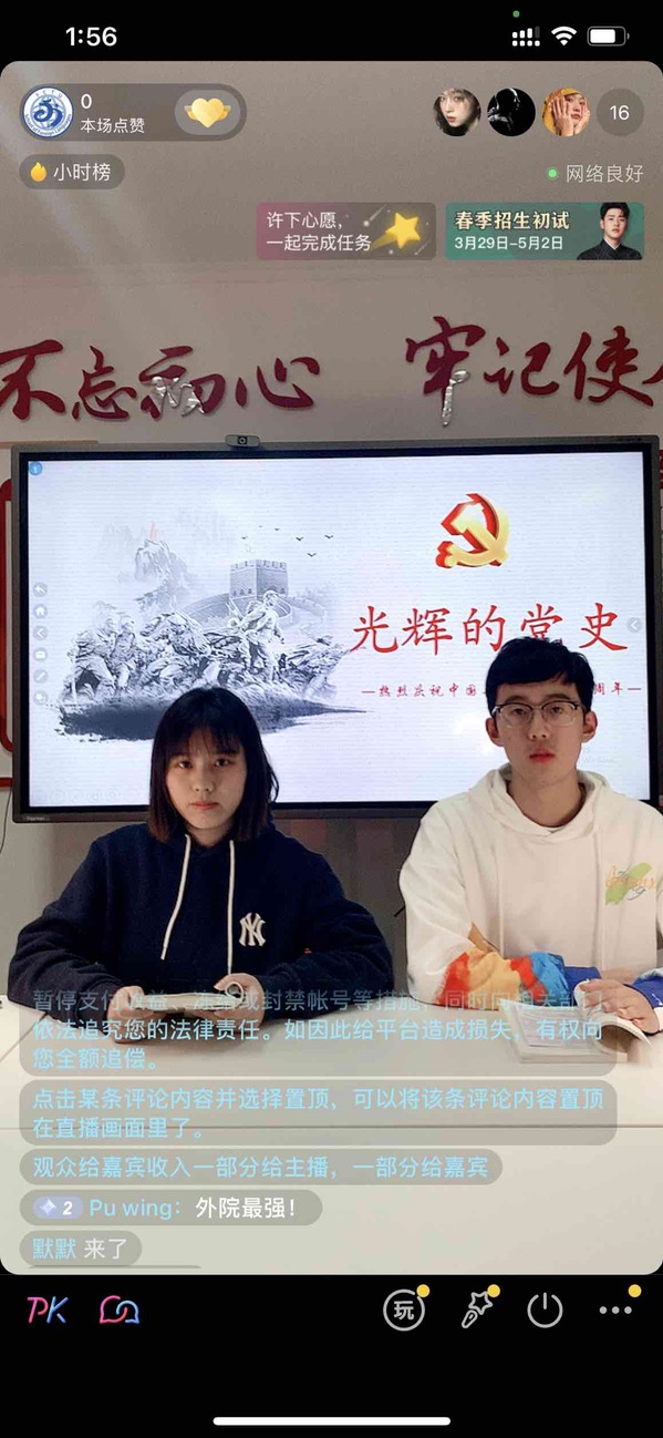 206团支书卜文表示:“抖音直播丰富了我们学习党史的渠道,听过观看直播我们更深层次的了解到了中国外交史。”