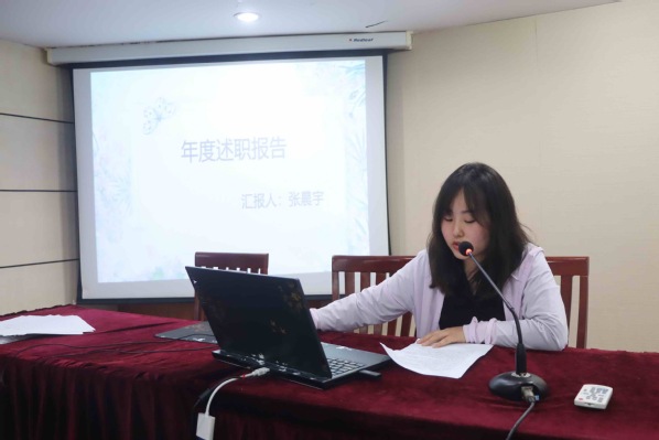 会议伊始,张宾州书记细数学院的重大工作成果,高度评价学生会这一年以来的工作,充分肯定各部门取得的工作成绩。随后由学生会主席团汇报一年的工作情况,继而由各部门代表汇报,他们从各自部门工作的开展情况、工作总结、工作不足、发展规划等方面依次述职,总结本部门这一年工作成绩和不足之处,提出改进方法,明确未来部门目标。各部门通过述职,交流工作经验,达到资源共享的会议目标。最后,团总支副书记孙明艳为本次述职报告大会做总结。同学们在孙明艳老师的总结中重温了这一年学生会走过的风风雨雨,现场掌声不断,高潮迭起,会议到此圆满结束。