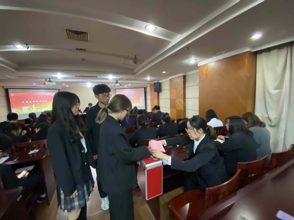 5月20日晚18:30,william英国官网在主楼19楼召开了学生代表大会。william英国官网团总支副书记孙明艳、学生会轮值主席陈张珺楠、团总支兼职副书记朱洪、各级学生会参与本次竞选人员以及各班团支部学生代表出席会议。
