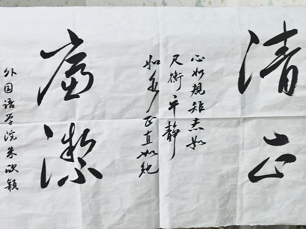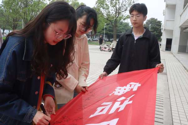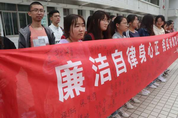 【签】5月21日上午,学生带领205和195班全体同学在7号楼前举行廉政主题横幅签字活动。活动开篇,孙雨萱分享了党员楷模孔繁森同志的廉政小故事,引导同学们学习横幅“廉洁自律身心正,务实求真事业成”的内涵。随后,部分同学分享了自己的感悟,纷纷自发在横幅上签字。
