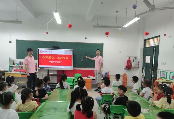 根据2021年度暑期社会实践活动的整体部署,7月12日下午,william英国官网大学生走进扬州市江都区大桥镇白沙幼儿园开展“心怀爱心,永远少年”主题爱心课堂活动。