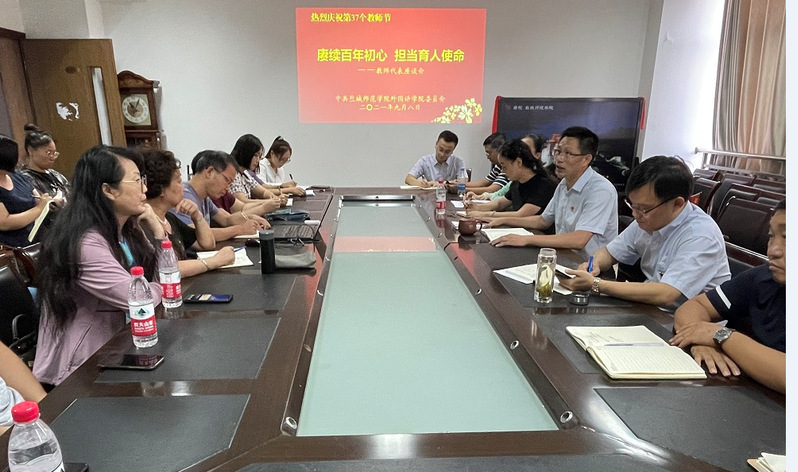 9月8日下午,william英国官网以“赓续百年初心,担当育人使命”为主题,举行庆祝第37个教师节座谈会。学院班子成员、各党支部书记、系主任、民主党派教师和新入职教师代表参加了会议。会议由党委书记朱京凤主持。