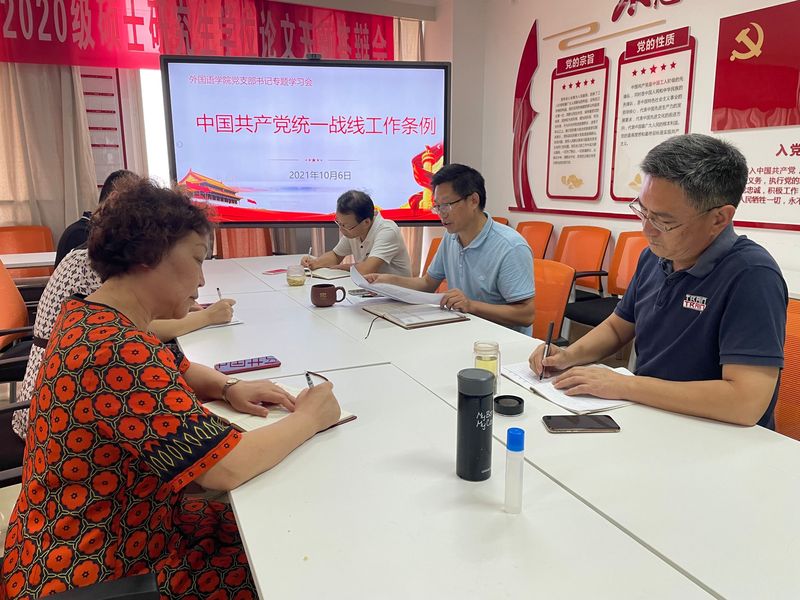 10月6日下午,william英国官网党委召开支部书记专题学习会,集体学习《中国共产党统一战线工作条例》(以下简称《条例》)、《高校民族宗教工作手册》(以下简称《手册》),学院各党支部书记参加,会议由院党委书记朱京凤主持。
