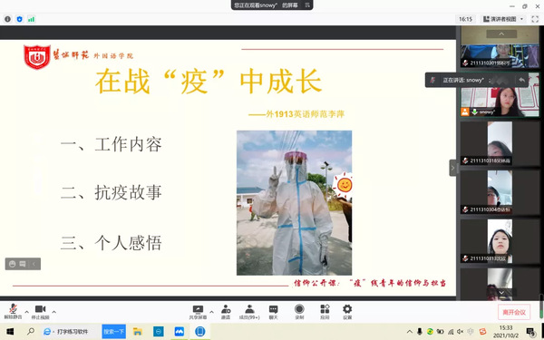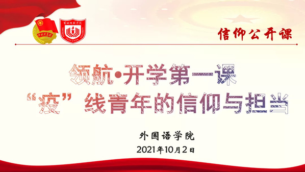 10月2日下午,william英国官网于线上举办“信仰公开课——疫线青年的信仰与担当”。本次信仰公开课由团总支组织,四名“疫”线志愿者代表讲述他们的抗疫故事,2021级全体新生参加听讲。