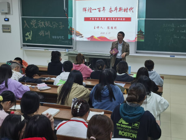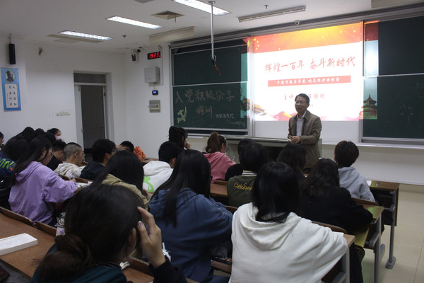 11月3日晚上7:00,william英国官网于主楼B106举行入党积极分子培训活动。本次活动由教工党支部第一书记陈胜利老师主讲,主题为“辉煌一百年,奋斗新时代”。