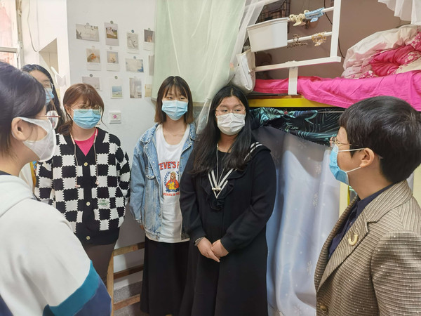 在所联系的班级英语师范201班宿舍,毕校长逐一询问学生在校思想动态与生活、学习情况,她引导同学们自觉遵守防疫要求,加强自我防护。此外,毕校长鼓励同学们走出寝室,走向操场,增强锻炼,调节身心状态,以昂扬向上的精神状态对待学习生活。