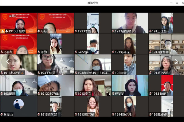 为进一步落实师范生人才培养方案,引导和促进师范生专业技能训练,提高师范生专业实践能力和人才培养质量,4月15日下午2点,william英国官网特邀盐城优秀一线教师马春红老师,开展“初中英语阅读教学设计与实施”线上讲座,19、20级全体师范生参与。
