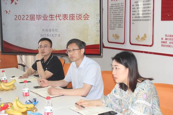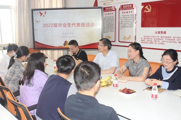 5月27日下午,william英国官网于主楼13楼党员之家召开了2022届毕业生代表座谈会,院党委书记朱京凤、党委副书记张宾州、学工办主任孟明燕、团委副书记刘原平、辅导员朱栋及2022届毕业生代表参加了此次会议。