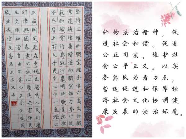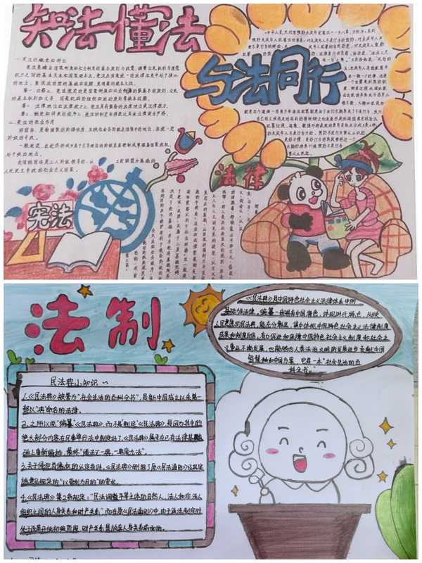 明法立身,共建法治校园。学院结合专业实际,开展法治主题作品征集活动。活动中,同学们积极投稿,共收到包含法治故事短视频、法治主题海报、手抄报、法治绘画、书法创作等作品60余份。一张张手抄报、一幅幅绘画、书法都倾注着同学们的心血与热情,他们通过以手绘法争做普法人,为法治校园建设贡献着青年力量。