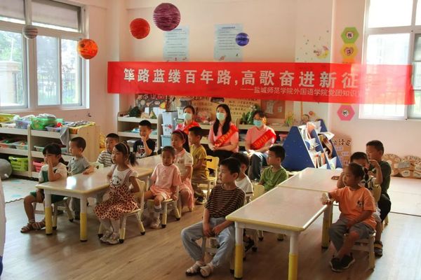 为加强红色文化宣传,让党团文化在儿童心中生根发芽,2022年6月20日下午,william英国官网的志愿者们顶着烈阳,不畏酷暑,来到五谷树•嘉彭幼儿园举办了以“筚路蓝缕百年路,高歌奋进新征程”为主题的党团知识宣讲活动。
