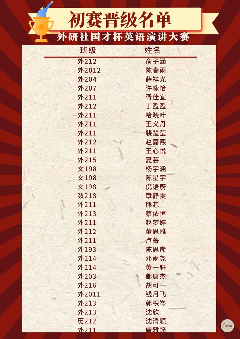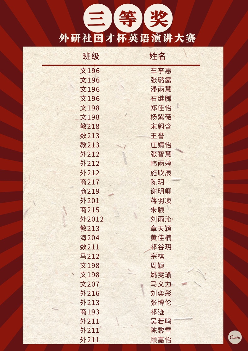 作为入选“全国高校学科竞赛排行榜”的唯一英语A类赛事,初创于2002年“外研社·国才杯”演讲大赛,已成为全国参赛人数最多、规模最大、水平最高的英语演讲赛事之一。2022年,世界面临百年未有之大变局,中国正迈向全面建成社会主义现代化强国的第二个百年奋斗目标。时代使命与国家发展为我国外语教育改革与人才培养提供了新视角、新任务、新机遇,为顺应外语教育改革、培养高质量外语人才、为全校学生提供展现自己的平台,我院特组织学生参与2022年度“外研社·国才杯”英语演讲大赛校赛,不断营造英语学习氛围,锻炼学生的跨文化交际能力和综合素质。