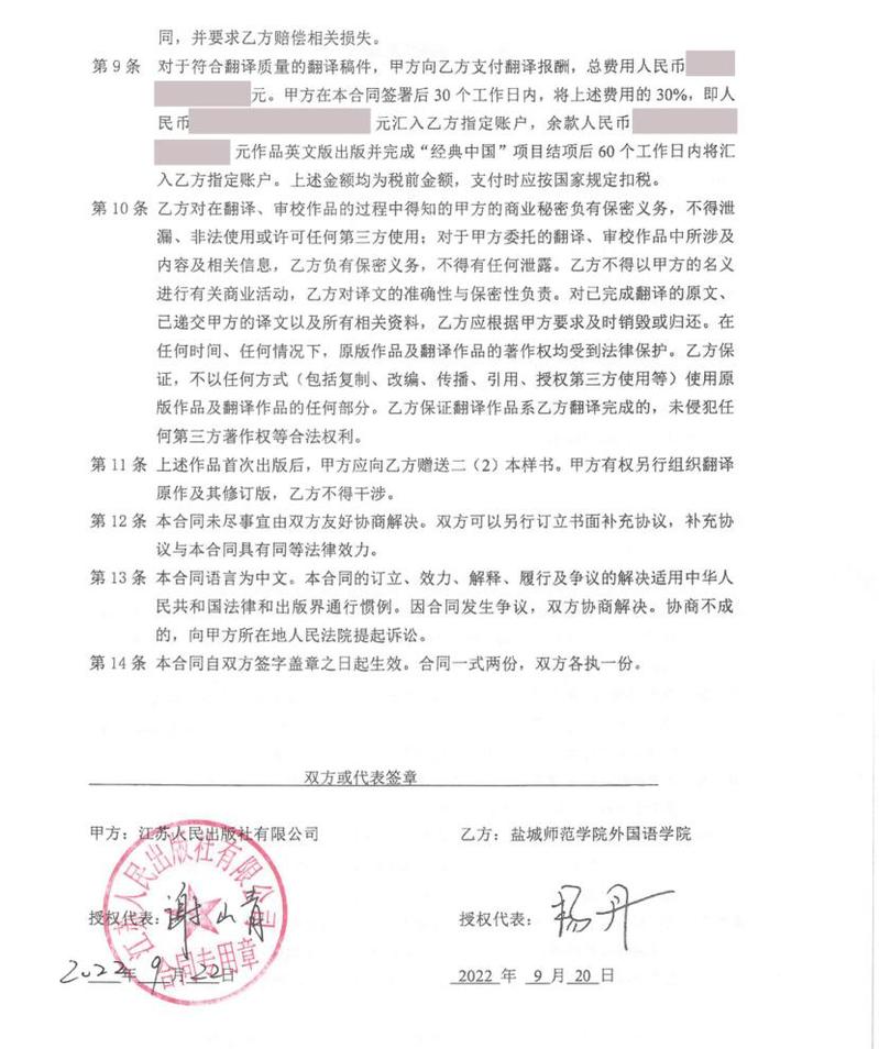 我院教师杨丹博士通过中方及外方的试译考察,成功签署合作合同,该著作的英文版预计2024年在英语主流国家(美国)出版发行。