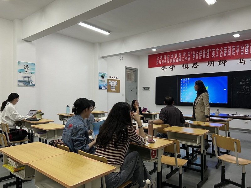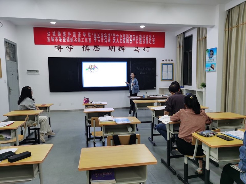 9月29号晚上,盐城市中小学特级(正高)教师后备班成员、盐城市高中英语教学能手贾玉兰老师来给我院英语师范生基本功大赛选手作赛前授课指导,她首先进行了综合技能的模拟授课示范,并就其教学设计思路对选手进行现场指导,随后对2位选手的模拟授课提出中肯建议,受到选手一致好评。邀请基础教育一线骨干教师对大赛选手进行指导,为同学们提供了现场观摩一线骨干教师模拟授课示范的机会,与一线教师面对面互动,也极大提升了选手的备赛技能,更是学院重视加强与基础教育深度交流合作、夯实师范生基本功的有效举措。