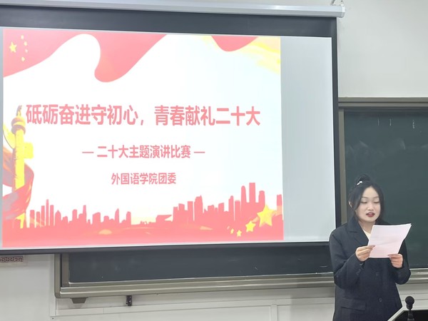 10月25日,“砥砺奋进守初心,青春献礼二十大”演讲比赛顺利举行。活动中,各参赛选手紧紧围绕主题开讲,从选手的身边人、身边事、身边的变化出发,以小见大,生动具体地展示新时代以来取得的历史性成就和非凡变化。一个个动听的故事,一句句发自肺腑的语言,或娓娓道来,或激情澎湃,选手们声情并茂、富有感染力的精彩演讲赢得了现场评委和观众的阵阵掌声。根据选手们的表现,评委组从演讲内容、语言表达和形象风度3个方面进行评分。经过一上午的激烈角逐,比赛最终评出一等奖1名,二等奖4名,三等奖5名。参赛选手们纷纷表示,这次比赛既是一次历练,也是一次思想上的大洗礼,激励着自己勇于担当作为、奋力建功新时代的热情。