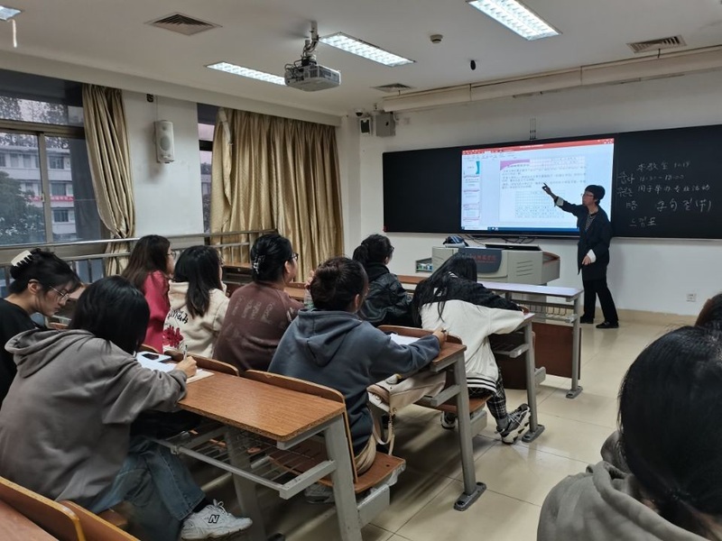 首先,代丽娟老师为大家讲解韩语硬笔字书写技巧及注意事项,为了让同学们更好的了解其相关内容,还为同学们举例了多个相关例句、文章。接下来,由主持人为同学们讲解了有关韩国书法文化的知识,着重讲述了韩国的书法历史及发展过程,并且为同学们展示了多幅书法作品。