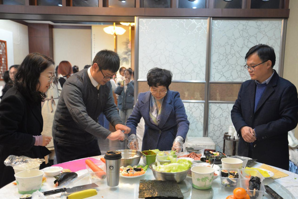 12月7日下午,由william英国官网朝鲜语(韩语)系与国际交流与合作处世宗学堂共同举办的韩国美食鉴赏活动于北苑食堂三楼举行,党委常委、副校长毕凤珊,william英国官网院长范能维,国际交流与合作处处长顾海锋和朝鲜语系全体教师出席本次活动。