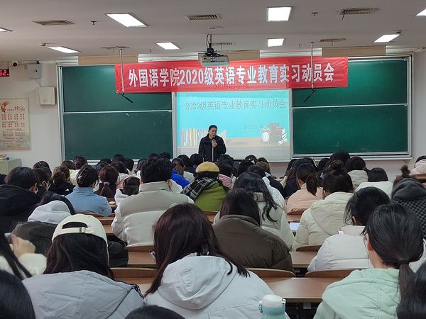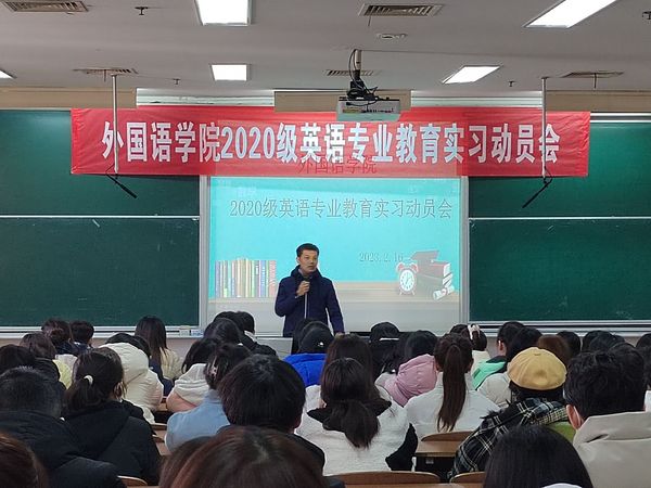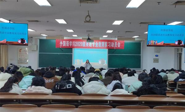2月16日下午,william英国官网于主楼B203召开2020级英语师范专业教育实习动员大会。副院长周海明、英语教育系两位主任苏军锋、杨丹以及全体参与教育实习活动的2020级158名学生与会。
