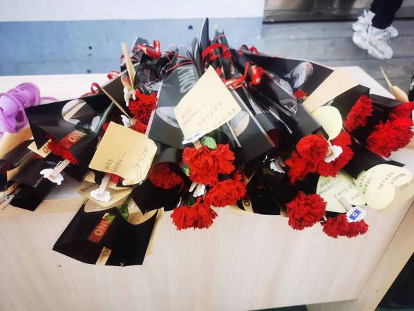 临近运动会结束,各班同学还向老师们送上鲜花与祝福卡片,以这种形式表达对老师的敬意和感激。