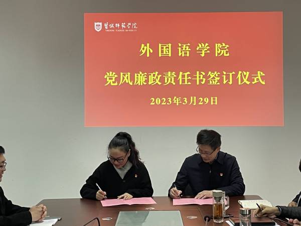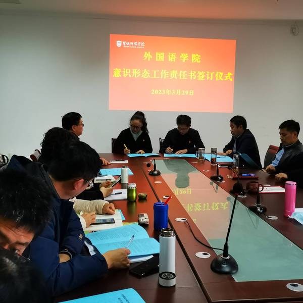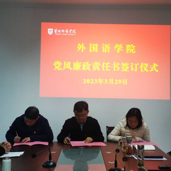 会上,外国语学院班子成员、各党支部书记、系(室)主任、科级干部分别签订党风廉政建设责任书和意识形态工作责任书。