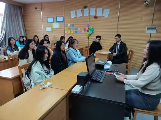 汤慧婷也和同学们分享了她的学习经验,包括她大学四年间学习韩国语的心路历程、考研所遇到的艰难困苦、自身学习心得体会等等。同学们都听得非常认真,他们积极地向学姐提问请教,汤慧婷也非常耐心地为大家一一答疑解惑,整个分享交流气氛轻松愉快,大家既学习到了宝贵的经验,也获得了宝贵的建议。
