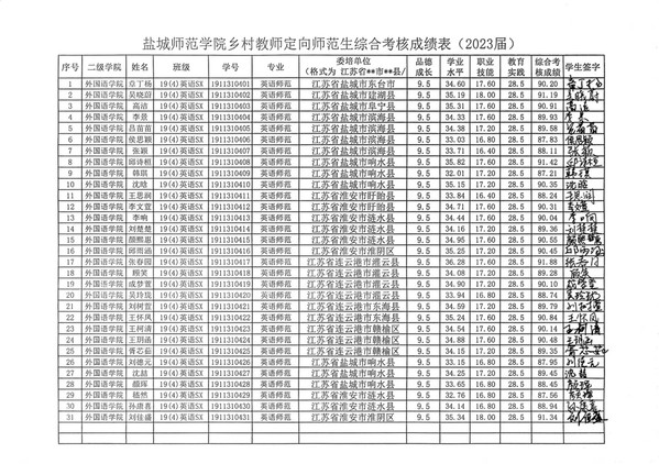 根据《WilliamHill威廉希尔乡村教师定向生综合考核成绩计算方法实施细则》,william英国官网对所有乡村教师定向生进行了综合评定,现将评定成绩进行公示: