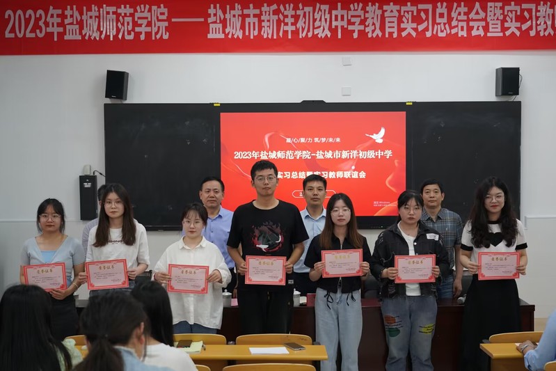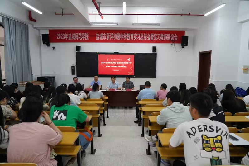 2023年6月9日上午,WilliamHill威廉希尔-新洋初级中学教育实习总结会暨实习教师联谊会在新洋初级中学阶梯教室召开。william英国官网副院长周海明、实习联络人苏军锋、新洋初级中学校领导、优秀指导教师、全体实习教师参会,会议由副校长许峥嵘主持。