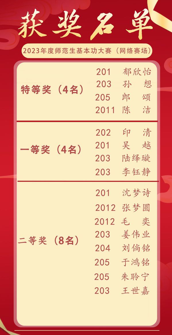 经过线下、线上激烈的角逐,张涵林、吴张怡、郁欣怡、孙想、郎颂、陈洁荣获特等奖,将代表我校中学英语学科参加今年秋季举行的江苏省第十二届师范生基本功大赛,该比赛是师范生的标志性赛事,在省赛获奖是全省多市考编入围的重要先决条件。