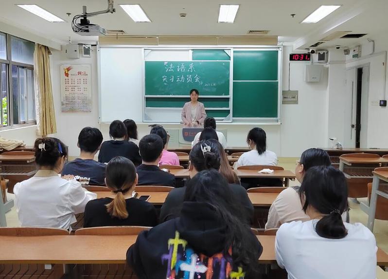2023年6月18日上午,我院法语系在主楼A101召开专业实习动员会,实习指导教师卫牧婵、王丹以及2020级全体法语系学生参会,法语系系主任徐海燕主持会议。