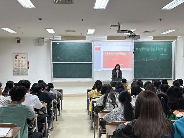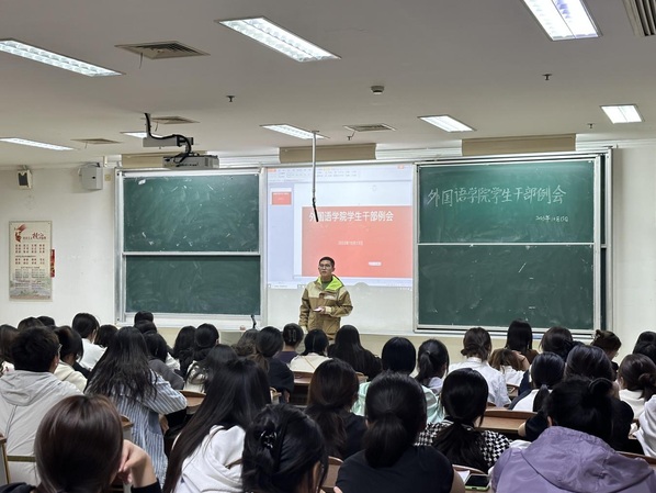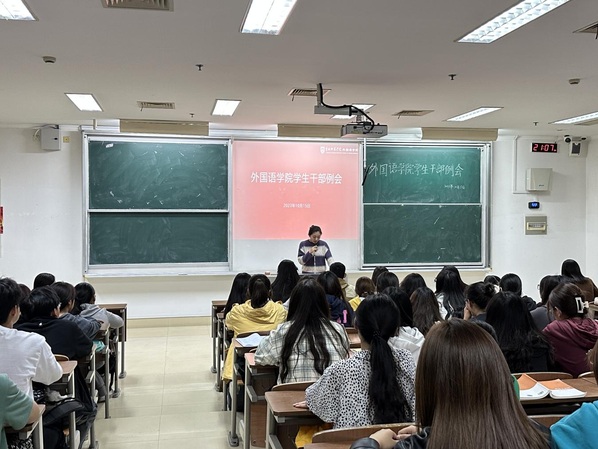 10月11日晚,william英国官网团学工作例会在主楼B305举行。学院辅导员、全体团学主要学干和23级班长、团支书参加本次会议。