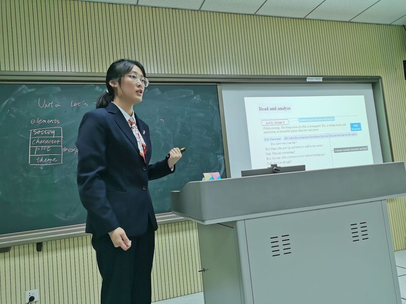 为进一步加强英语师范生能力培养,搭建“以赛促学”平台,10月18号晚上,我系特邀盐城市中小学特级(正高)教师后备班成员、盐城市高中英语教学能手贾玉兰老师来给第十二届江苏省英语师范生基本功大赛选手作赛前授课指导,她首先肯定了六位选手刻苦训练的精神,就高中英语单元各模块的教学设计思路对选手进行详细指导,提出了改进建议和提升方案,并回答选手提问,受到选手一致好评。邀请基础教育一线骨干教师对大赛选手进行现场指导,与一线教师面对面互动,极大提升了选手的备赛技能和综合素养,更是学院重视加强与基础教育深度交流合作、夯实师范生基本功的有效举措。